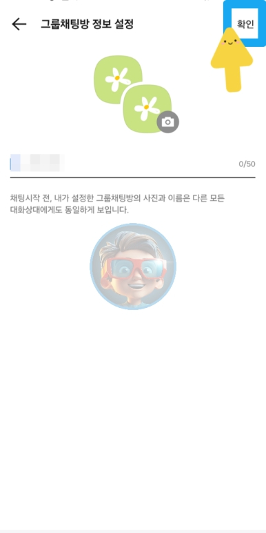 대화 상대를 선택한 후, 채팅방 이름과 이미지를 설정하면 준비 완료!