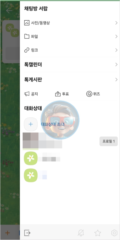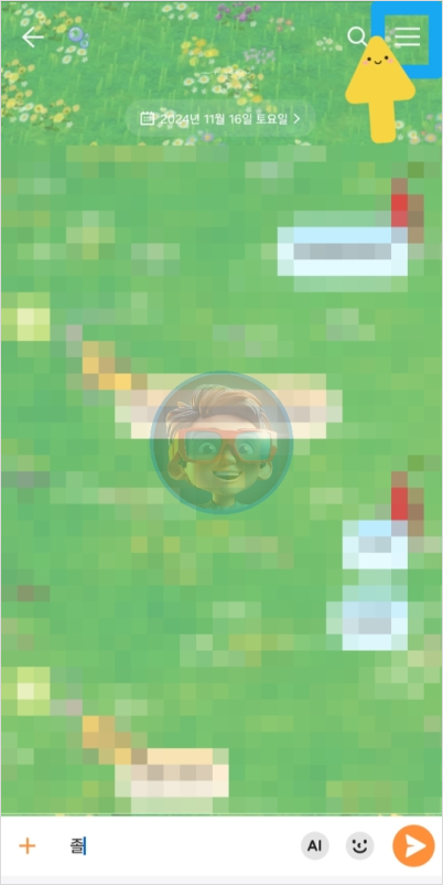 카카오톡 앱을 실행 후 여러분이 확장하고 싶은 카톡방을 선택합니다.